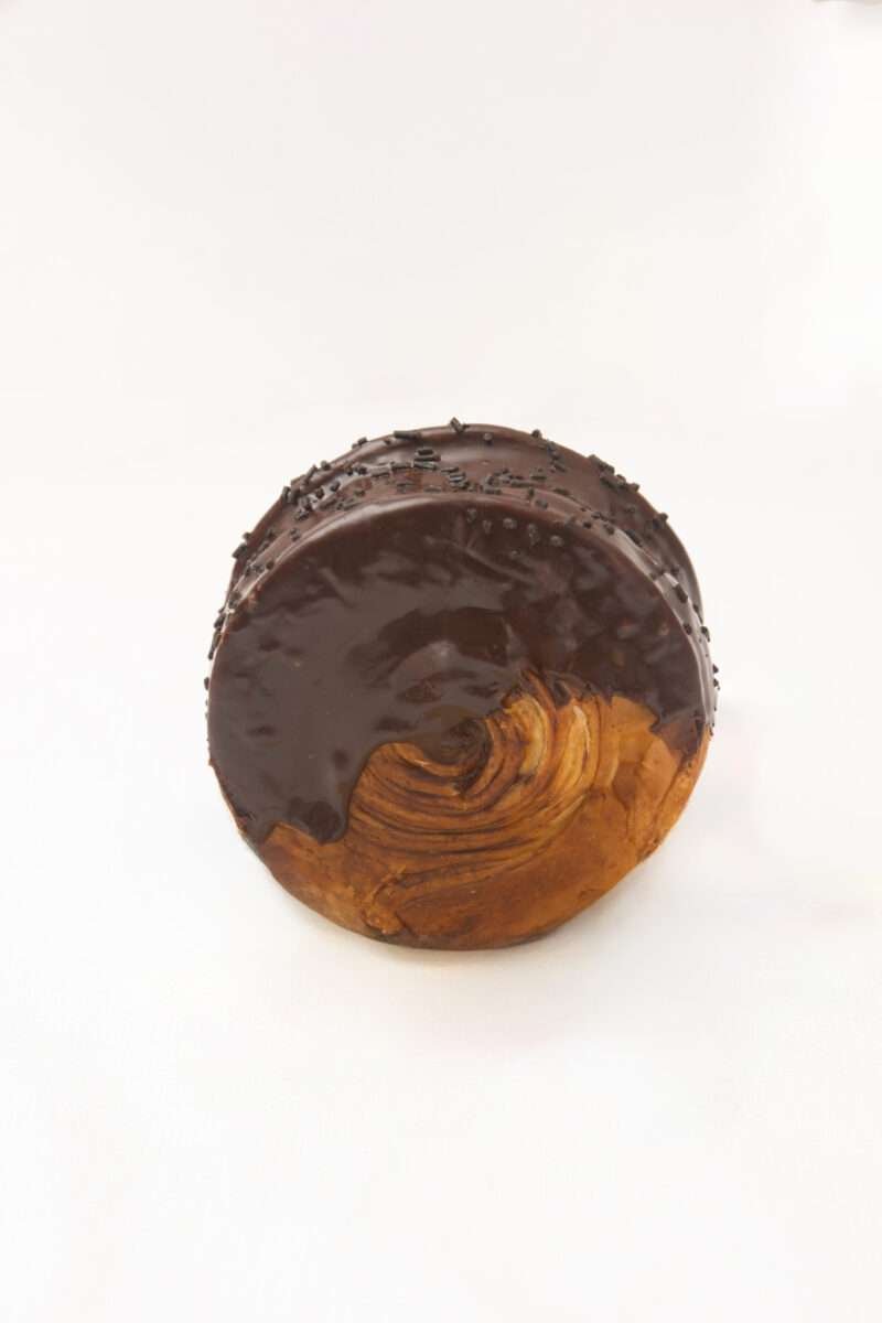 Flaky, buttery layers of all-butter pastry wrapped around a rich, silky dark chocolate cream. Made with 70.5% couverture, real vanilla, and organic ingredients, this indulgent crown is pure chocolate decadence in every bite.